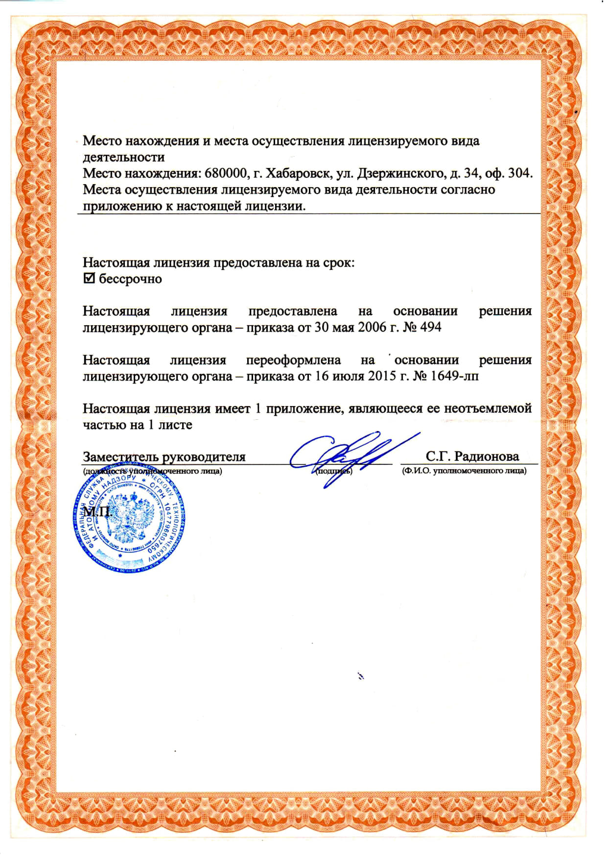 Лицензия на осуществление деятельности в области использования источников ионизирующего излучения.