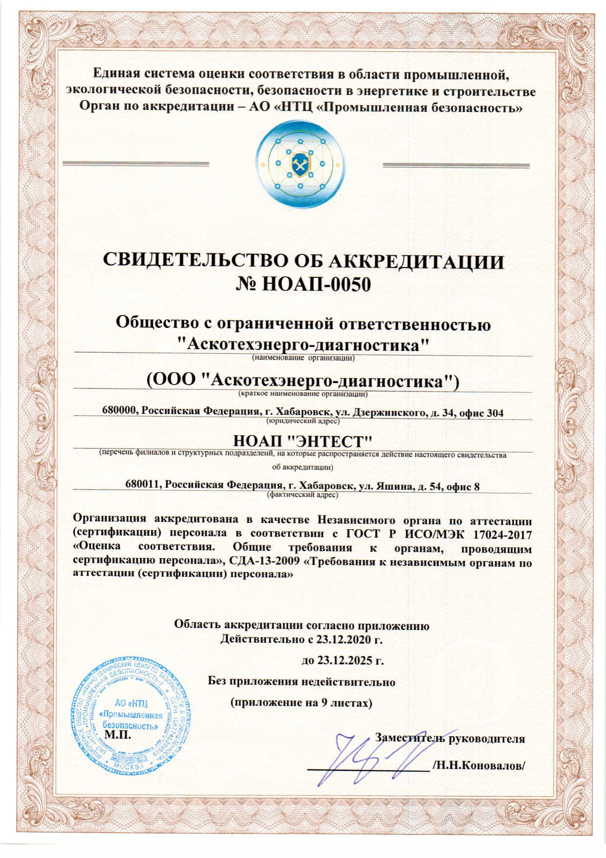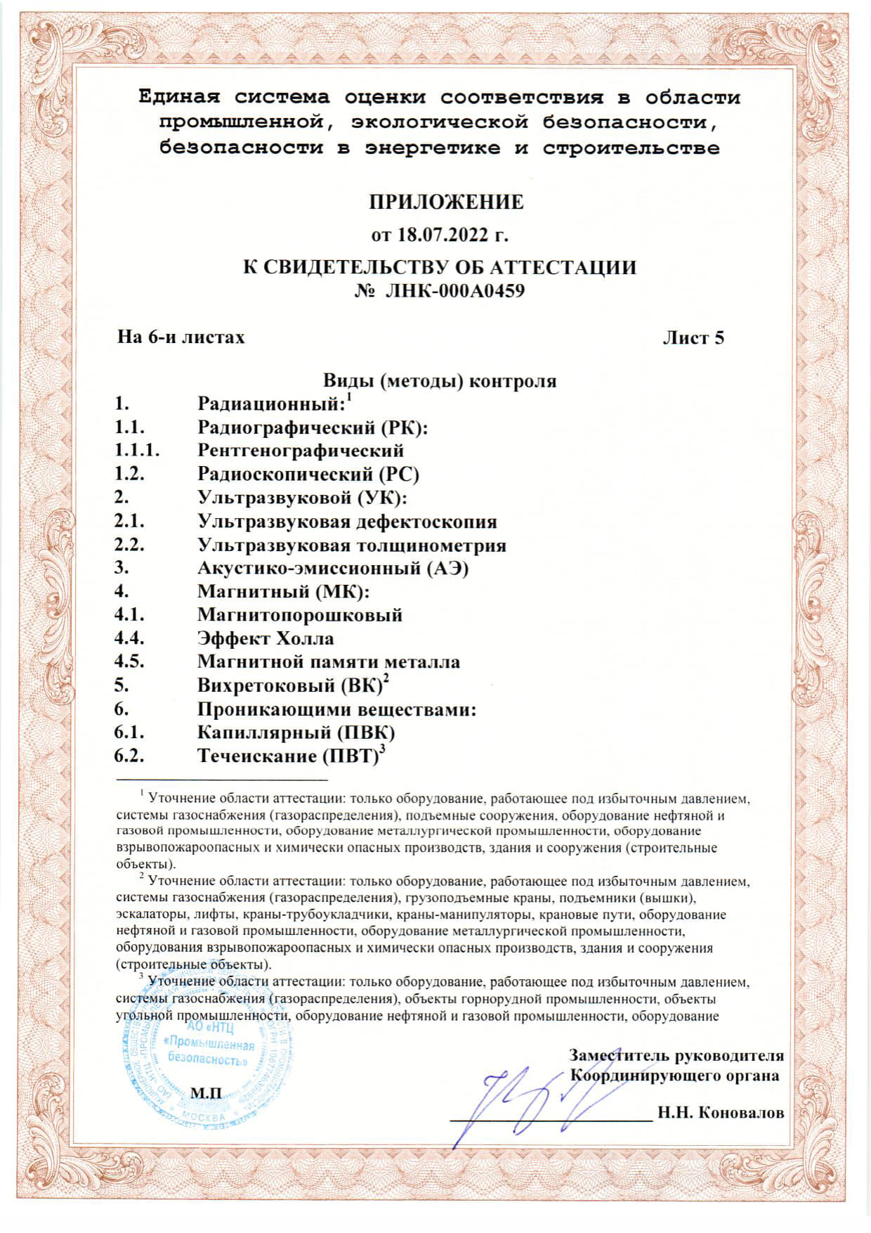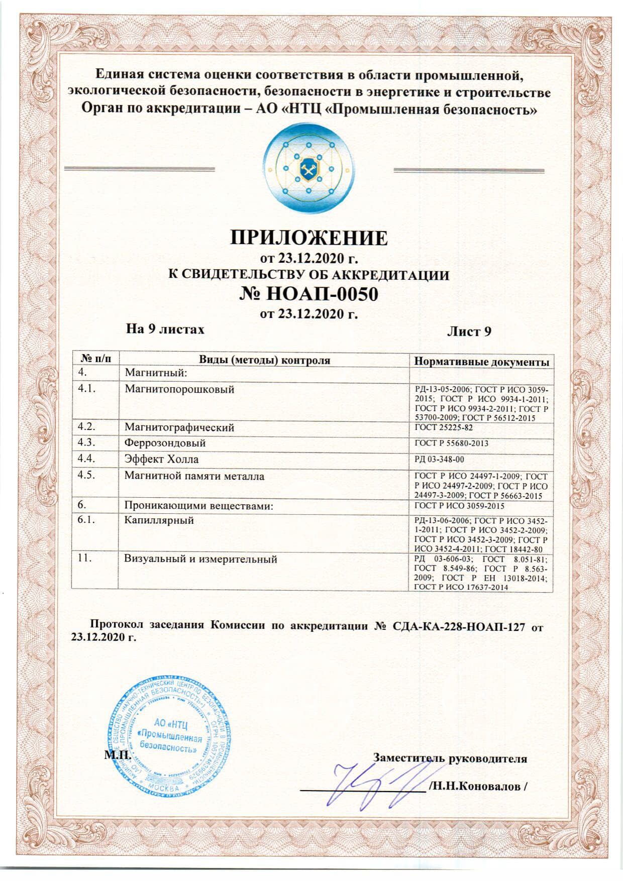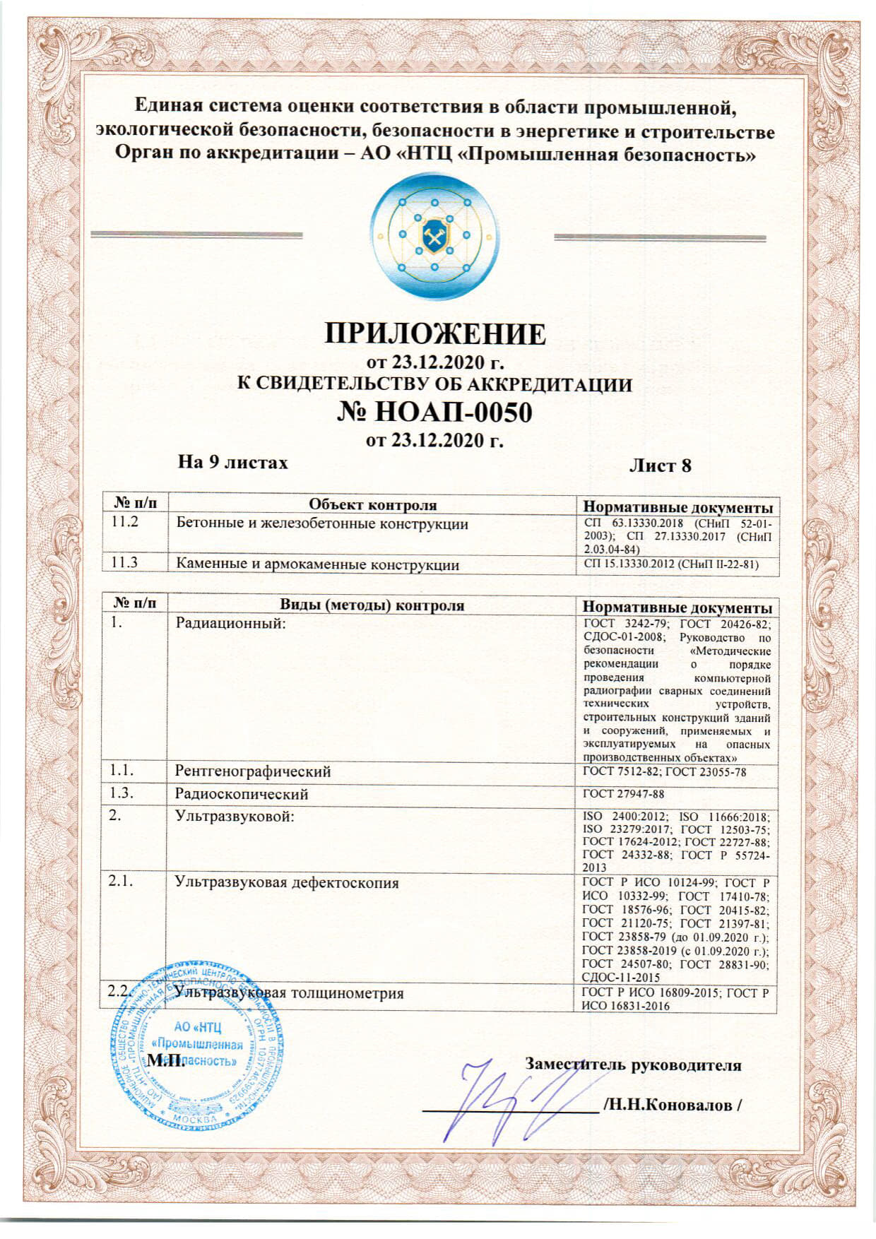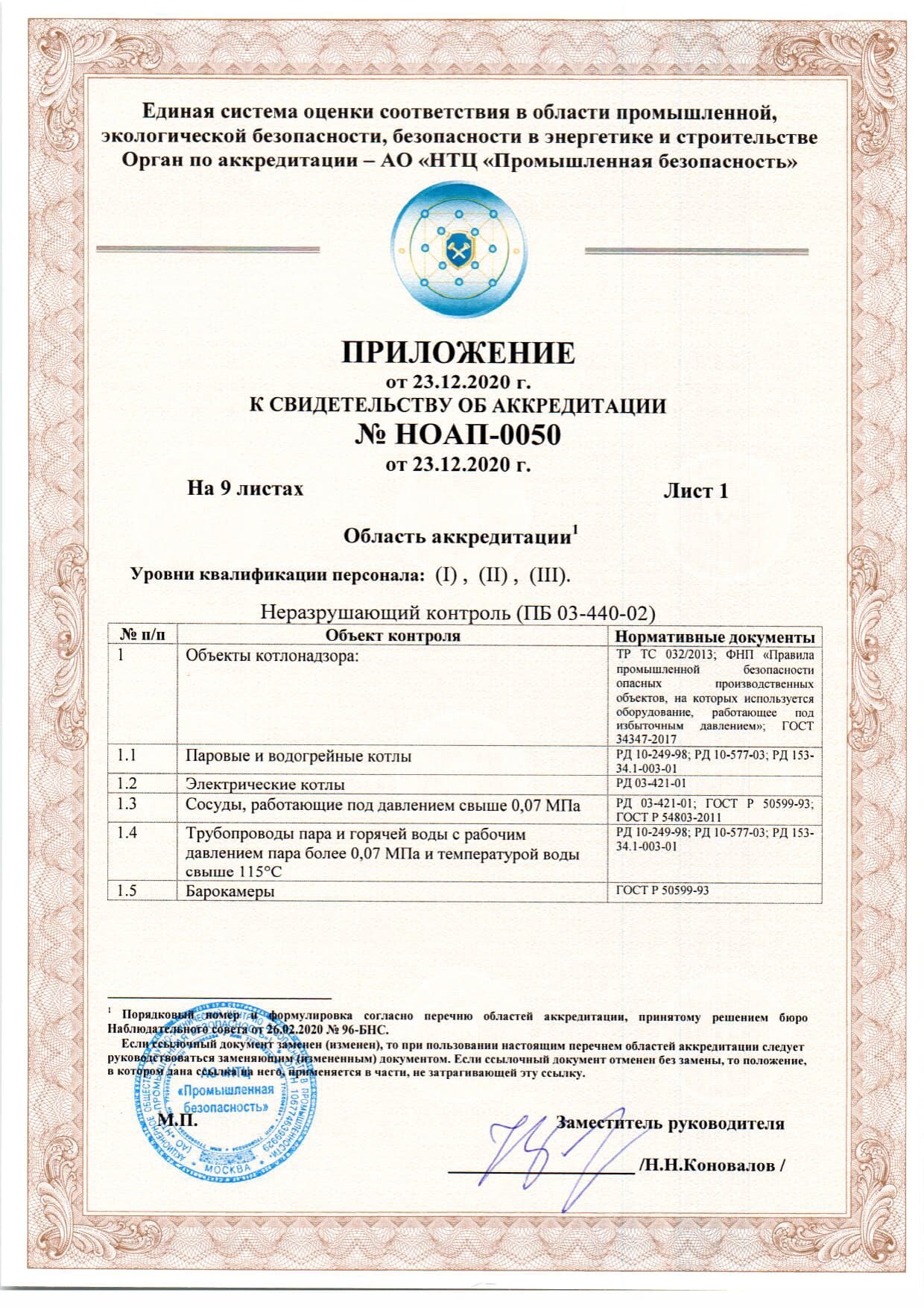 Документы об аккредитации испытательной лаборатории неразрушающего контроля.