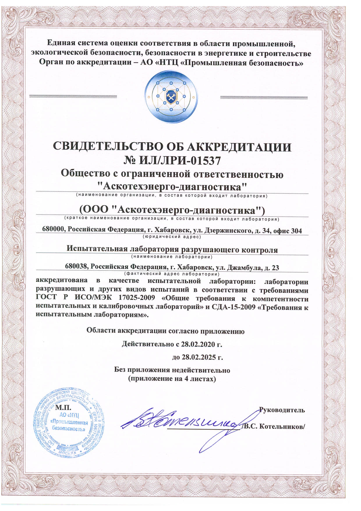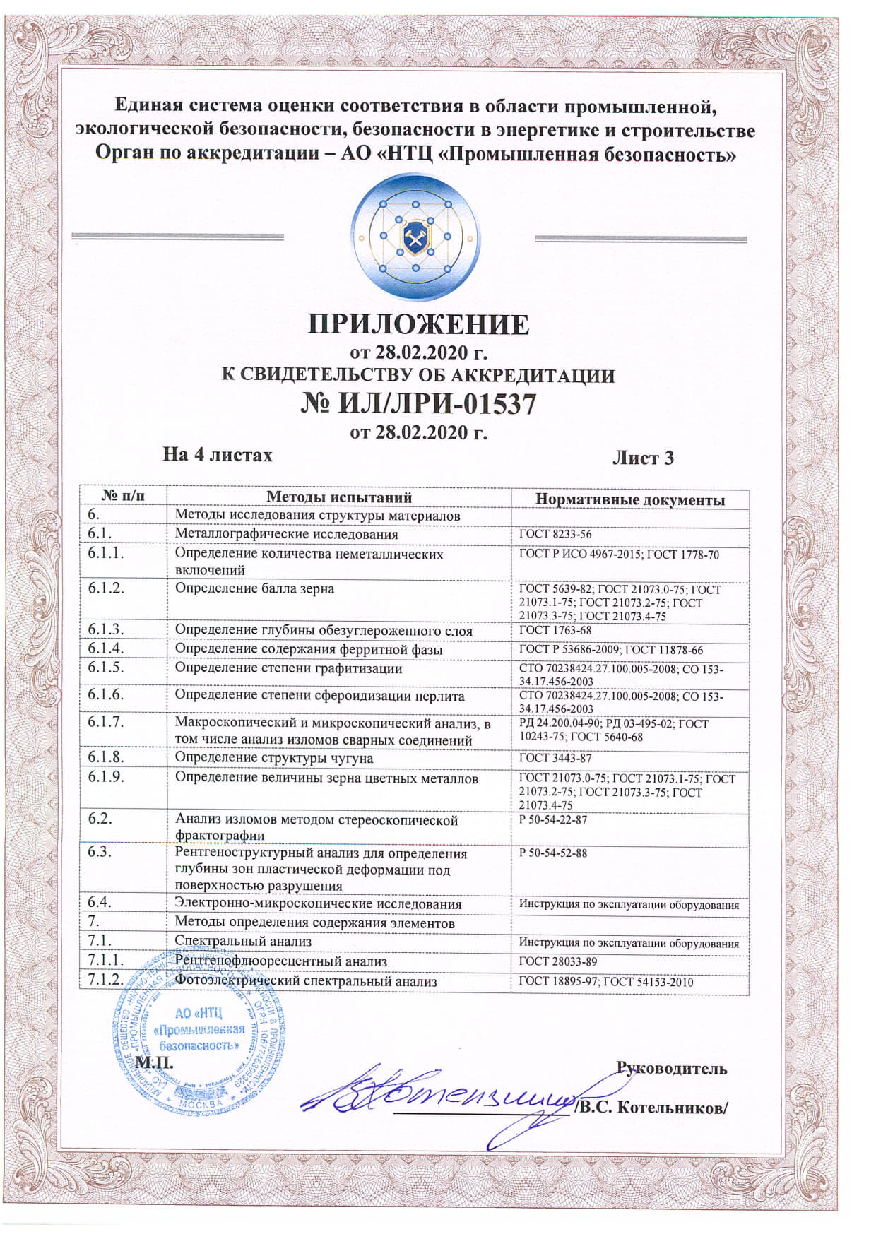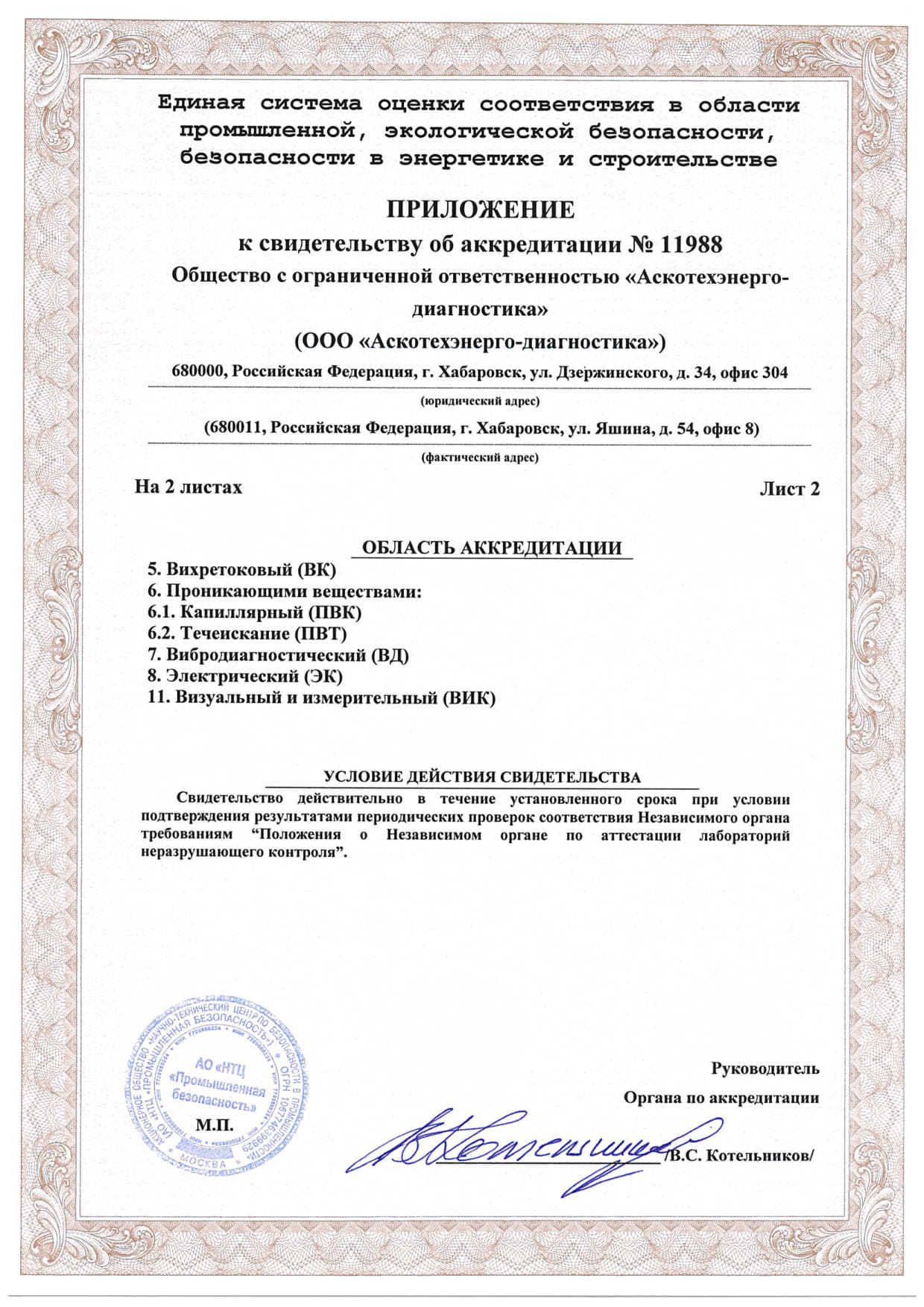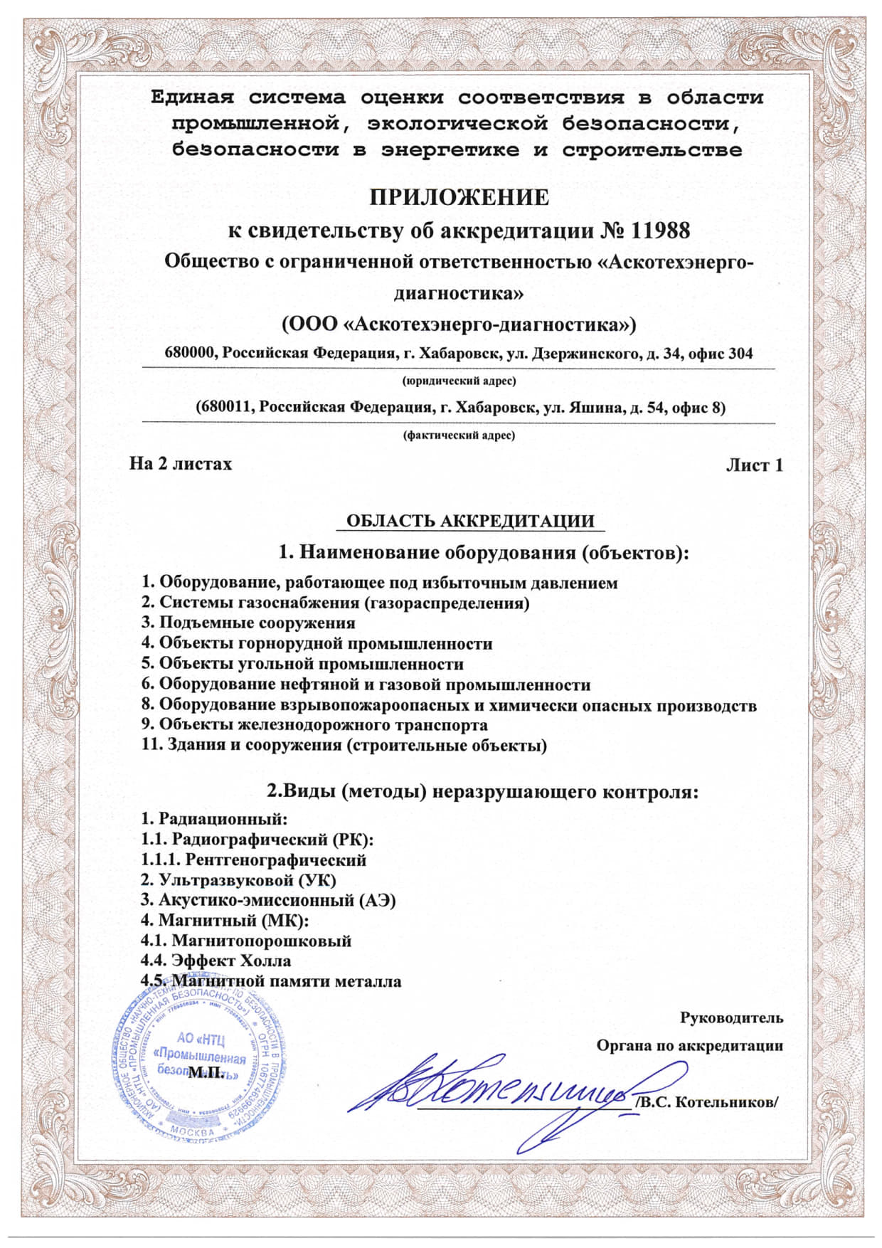 Документы об аттестации испытательной лаборатории неразрушающего контроля.