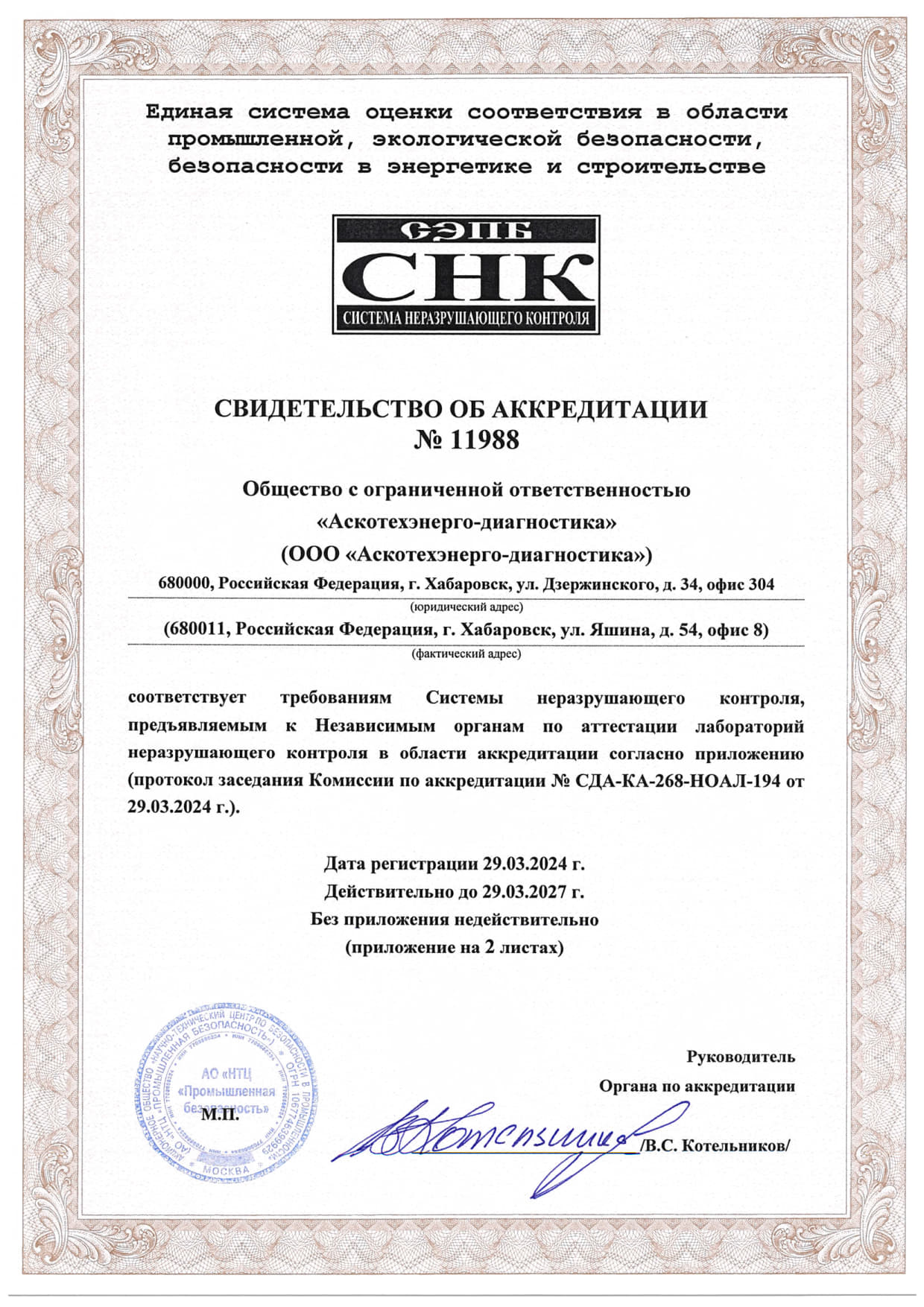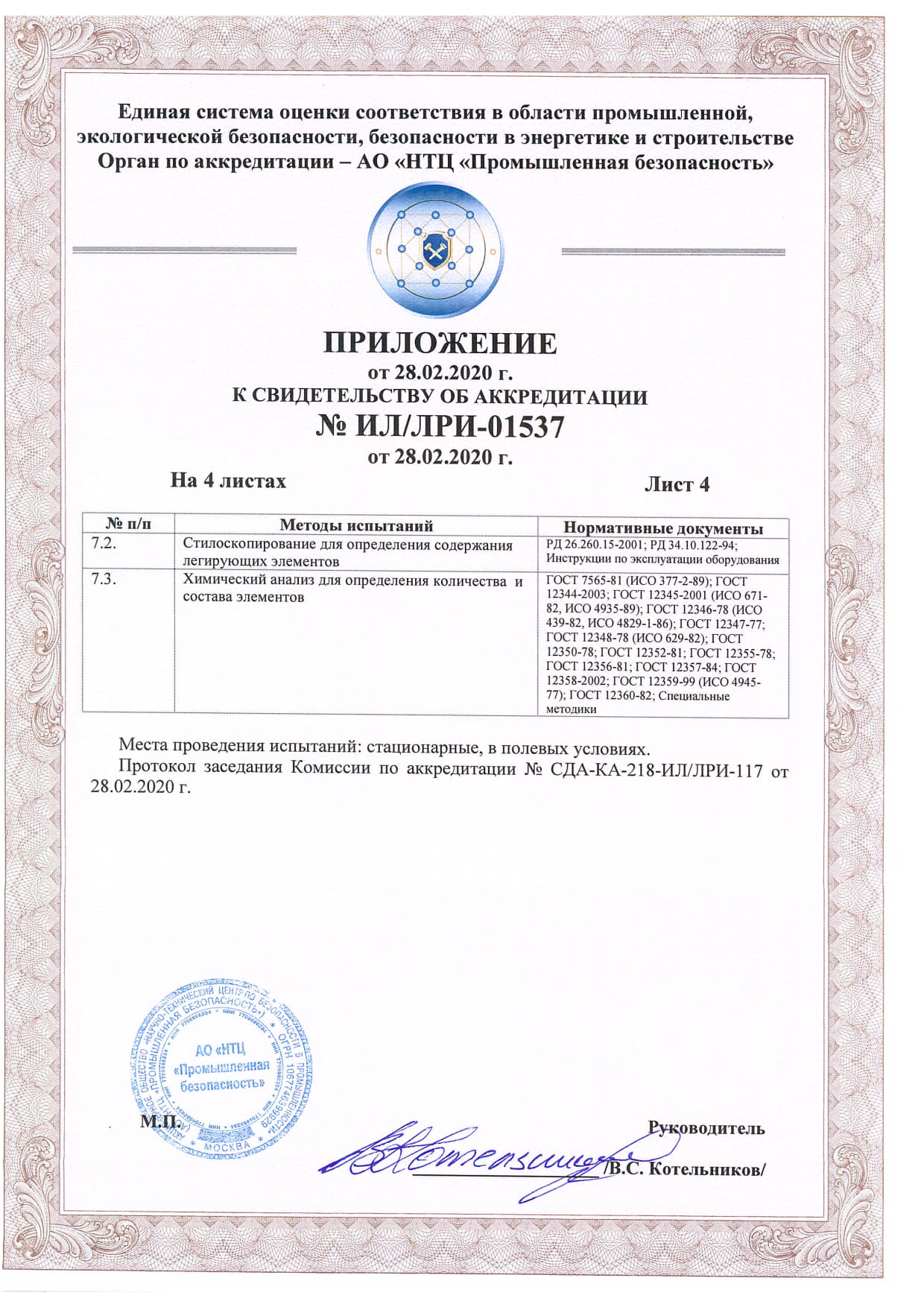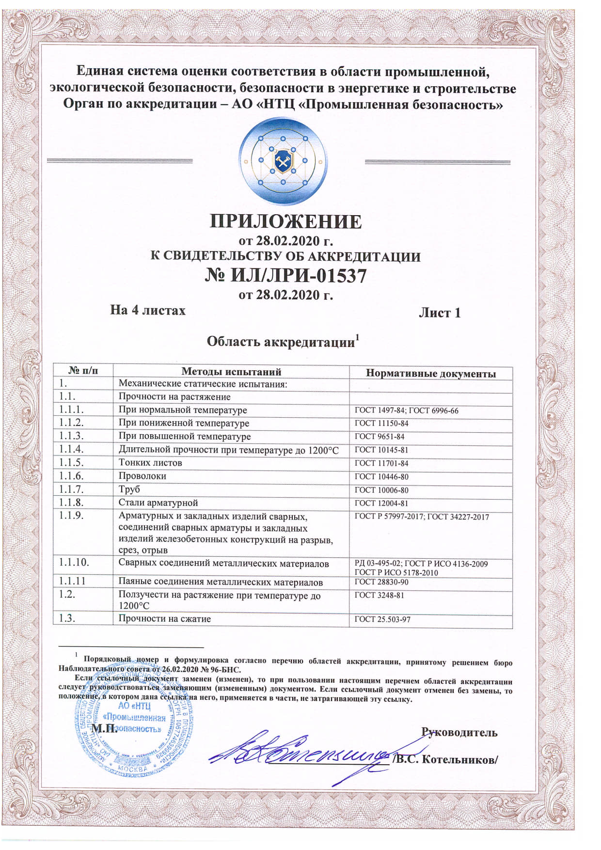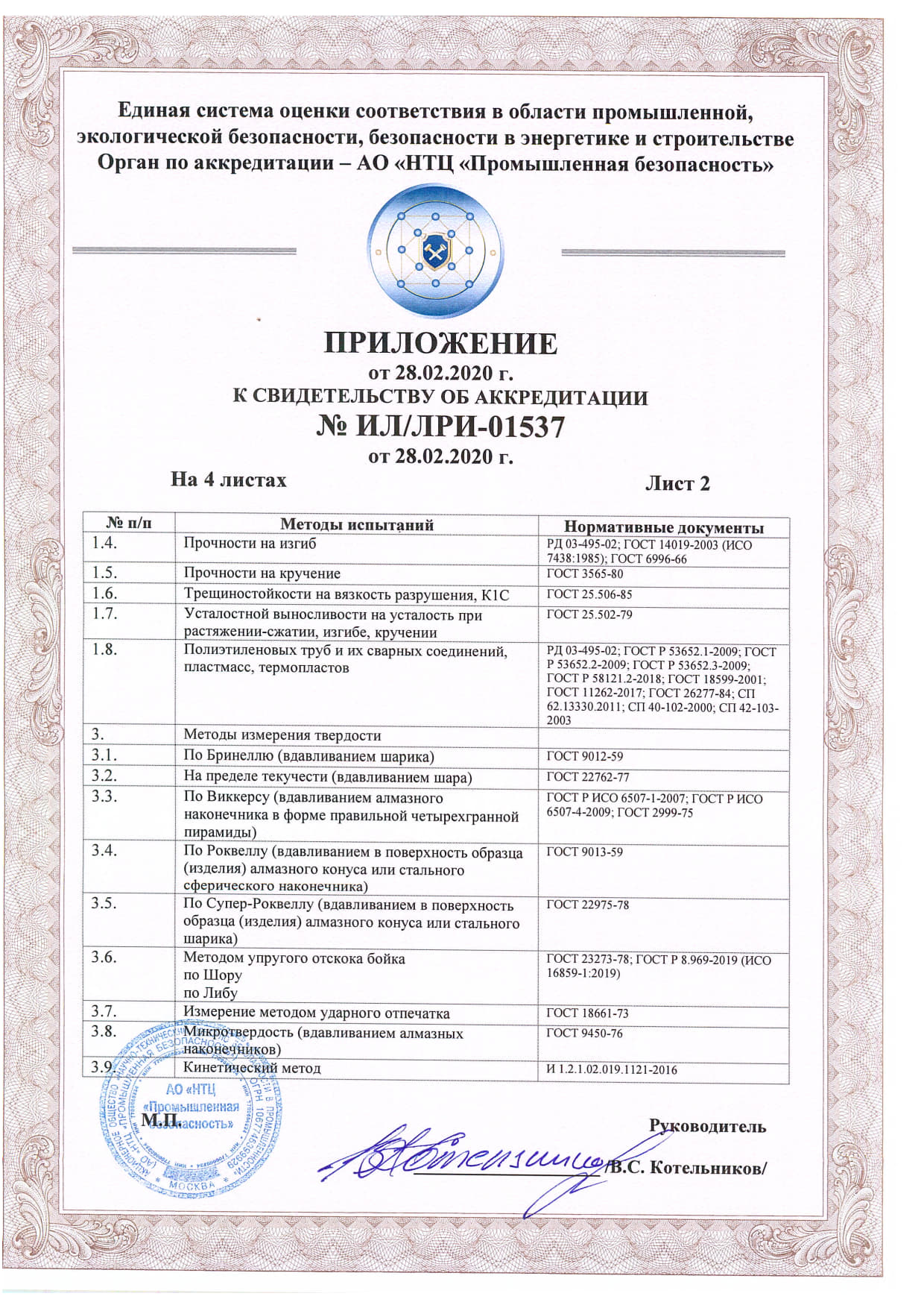 Документы об аттестации испытательной лаборатории неразрушающего контроля.