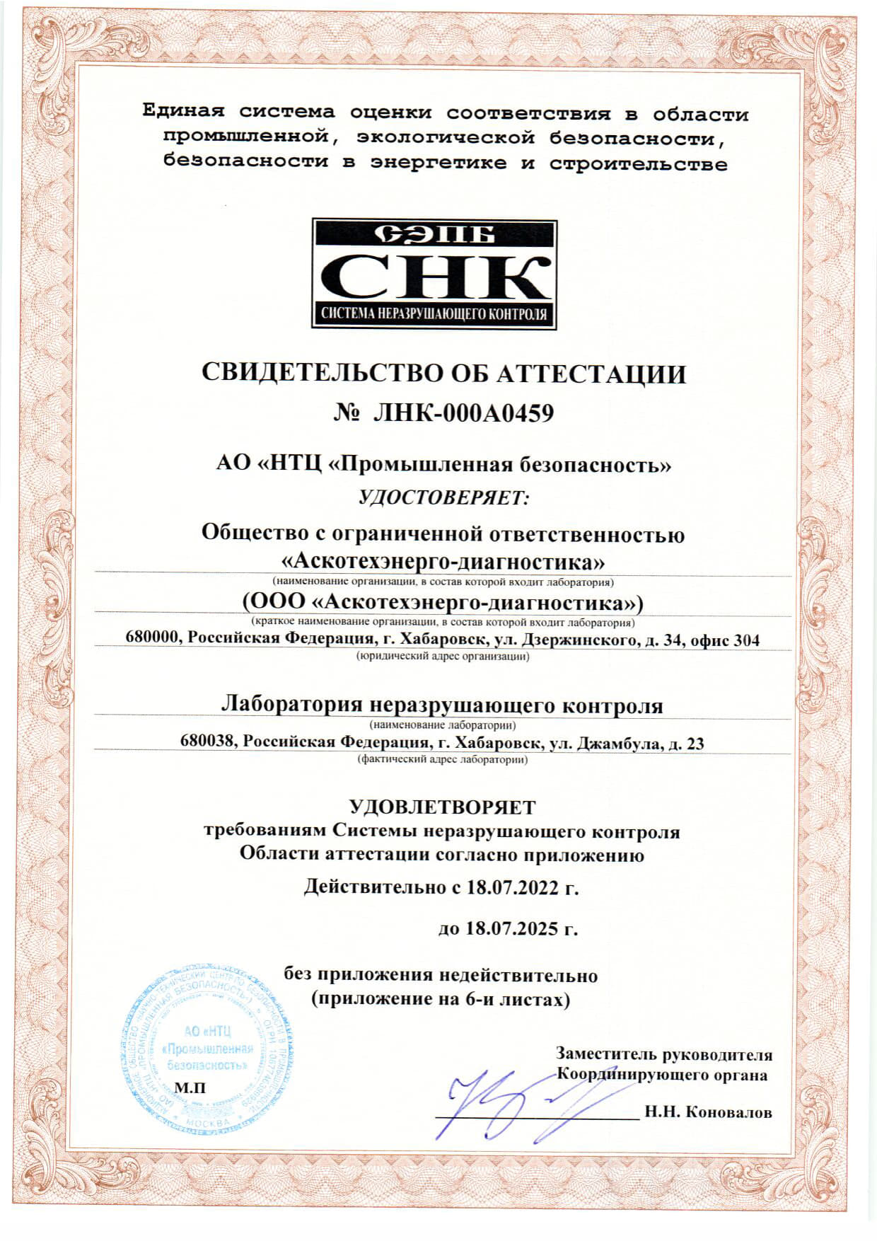 № ЛНК-000А0459 от 18.07.2022